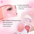 - Multi-Texture Formulation: A blend of creamy blush and powder highlights allows for flexible application and different techniques.